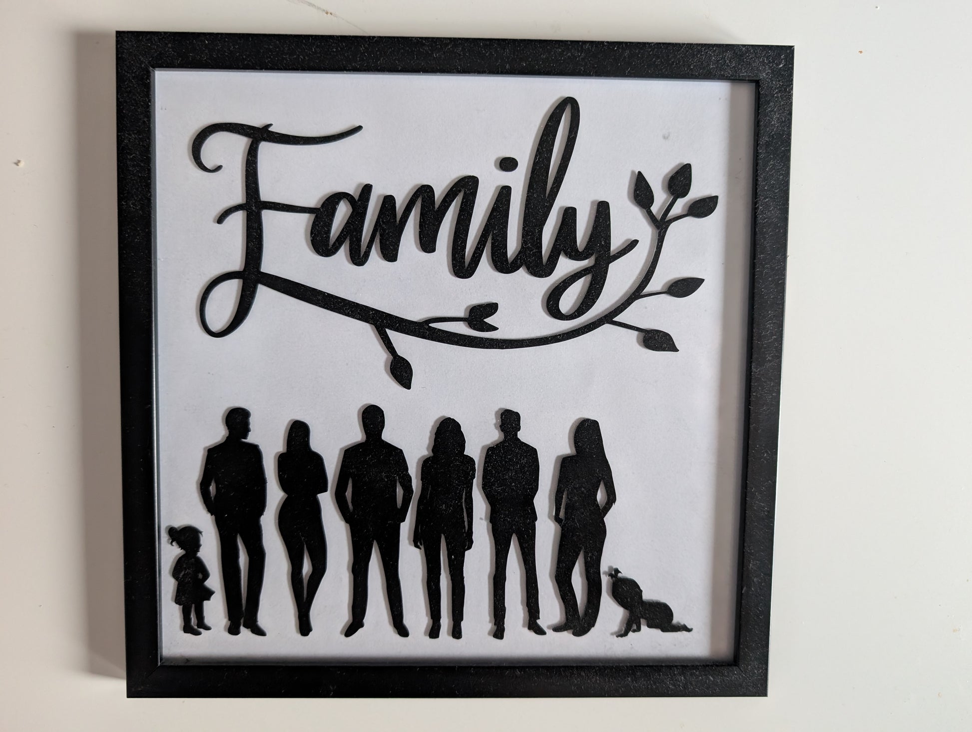 Créez un souvenir intemporel avec ce tableau de famille personnalisé. Chaque membre de votre famille est délicatement découpé en silhouette, créant une composition unique qui célèbre vos liens précieux. Parfait pour embellir votre intérieur, ce tableau capture l'essence de votre famille dans un style épuré et élégant. Un cadeau touchant qui raconte votre histoire à travers l'art de l'ombre.